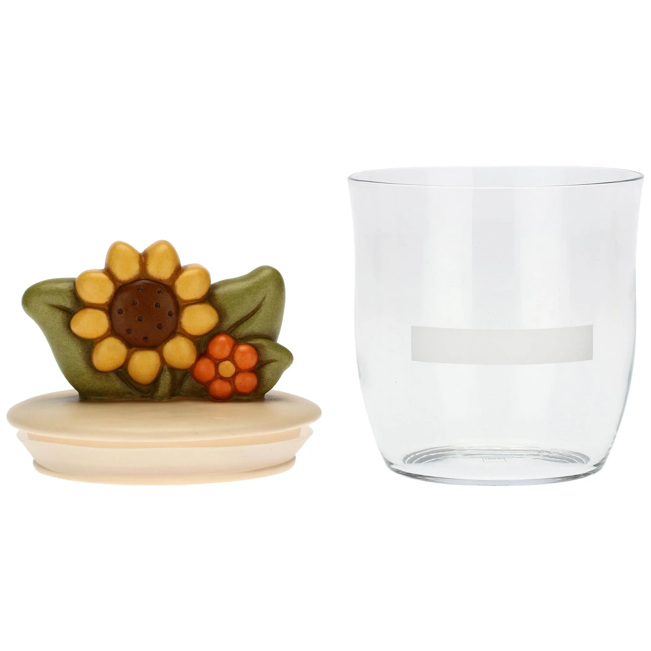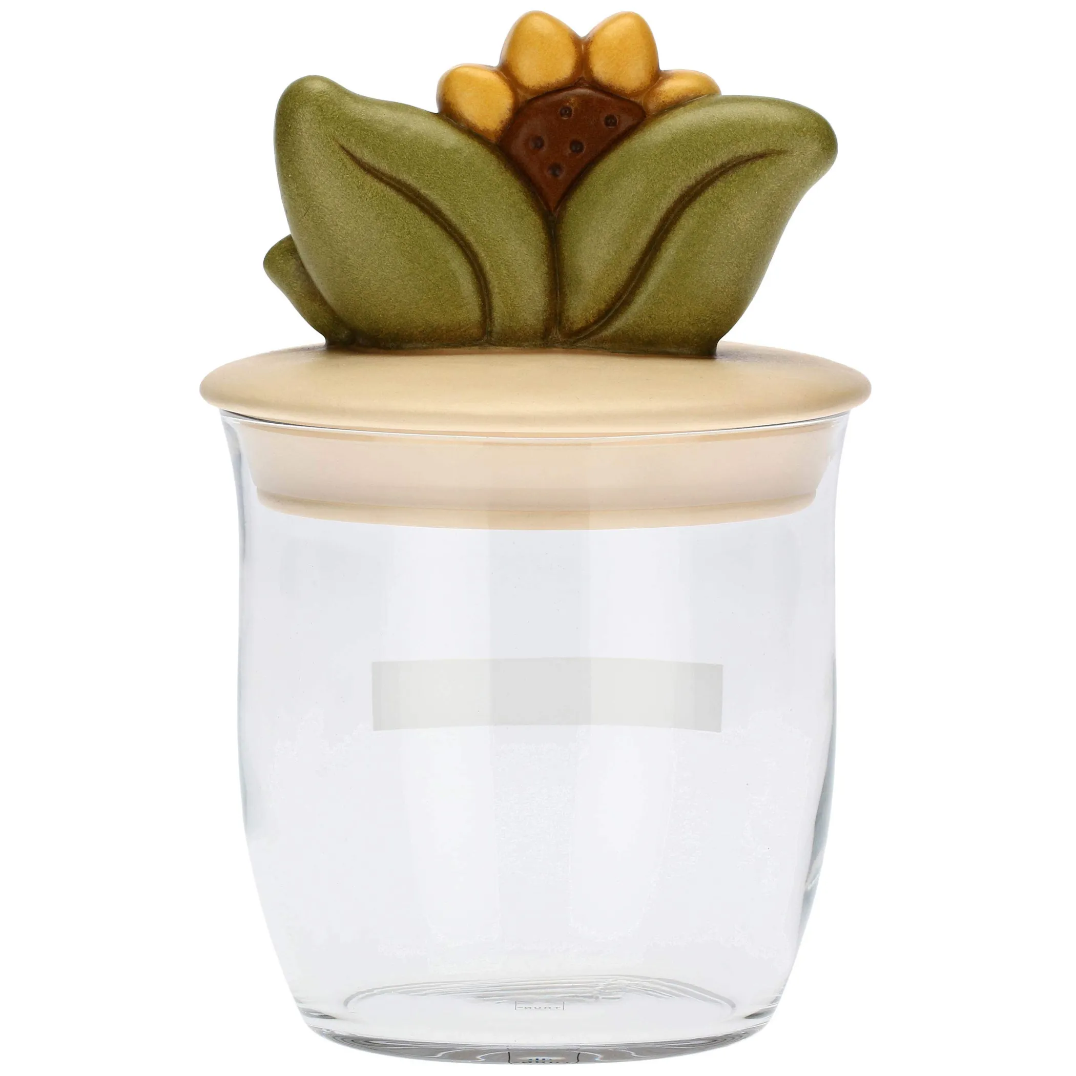 Un nuovo barattolo da cucina perfetto per conservare e mantenere la freschezza di sale, zucchero, caffè, spezie, farina, aromi e tanto altro ancora. Il vetro trasparente ti consentirà di vederne il contenuto e riconoscerlo facilmente mantenendo in ordine la tua dispensa senza tralasciare l’allegria dello stile THUN. Impreziosito dall’applicazione in ceramica decorata a mano a forma di girasole. Scopri le altre varianti disponibili per un set completo da regalare.