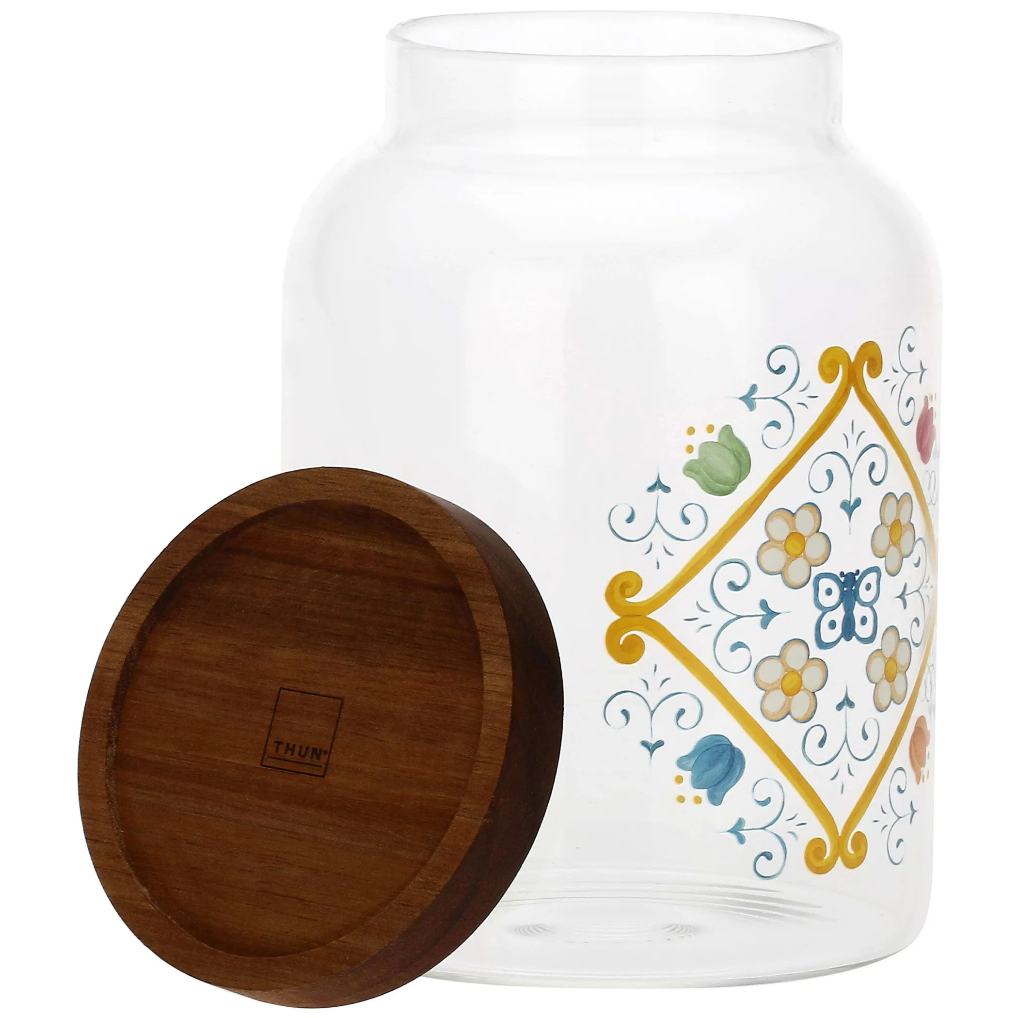 Un intreccio di culture che si fondono per dar vita a decorazioni geometriche che si arricchiscono grazie al patrimonio di icone THUN, con il tulipano e le margherite che ne accendono il decoro del barattolo della linea Eolia, dedicata all’emozioni Mediterranee. Un Design unico ed esclusivo grazie alla firma della farfalla che sprigiona una storia di tradizione ed eleganza. Scopri tutta la collezione per decorare la tua casa.