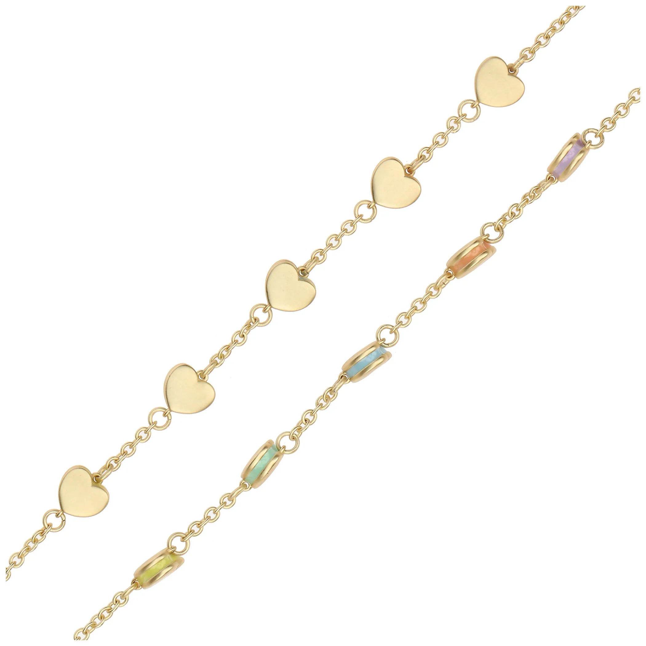 Il bracciale da donna con cinque cuori è un gioiello unico ed elegante. Ogni cuore ha le estremità colorate in tonalità diverse, creando un design elegante ma allo stesso tempo giocoso e vivace. Un accessorio che unisce raffinatezza e originalità, perfetto per aggiungere un tocco classico ma allegro al tuo look. Ideale per chi cerca un gioiello inaspettato, capace di stupire con delicatezza.