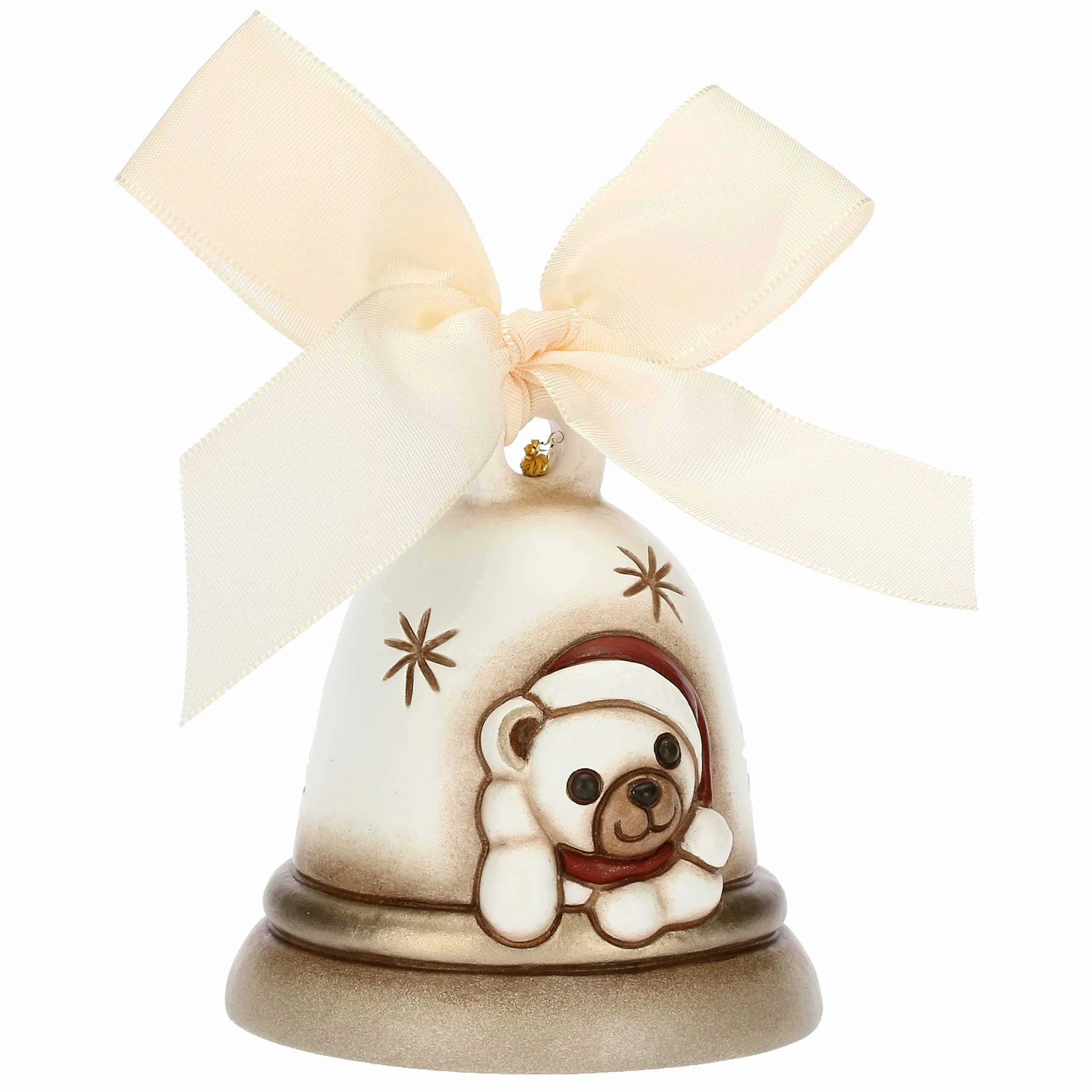 La magia del Natale e la gioia di stare insieme decorando casa, la tua tavola per le feste Natalizie con la campanella bianca Limited Edition THUN 2023 decorata con l’iconico Teddy. Ideale da regalare e collezionare.