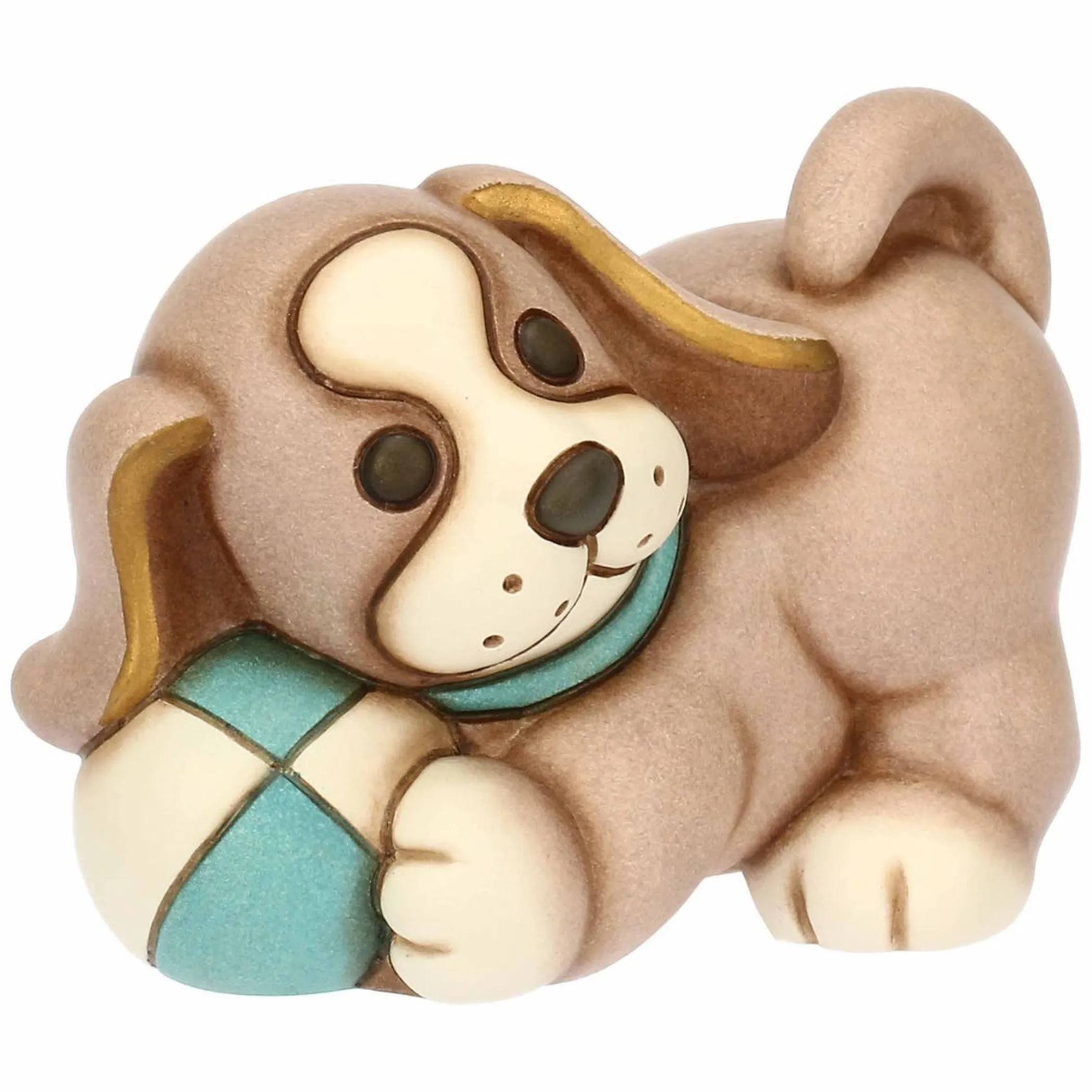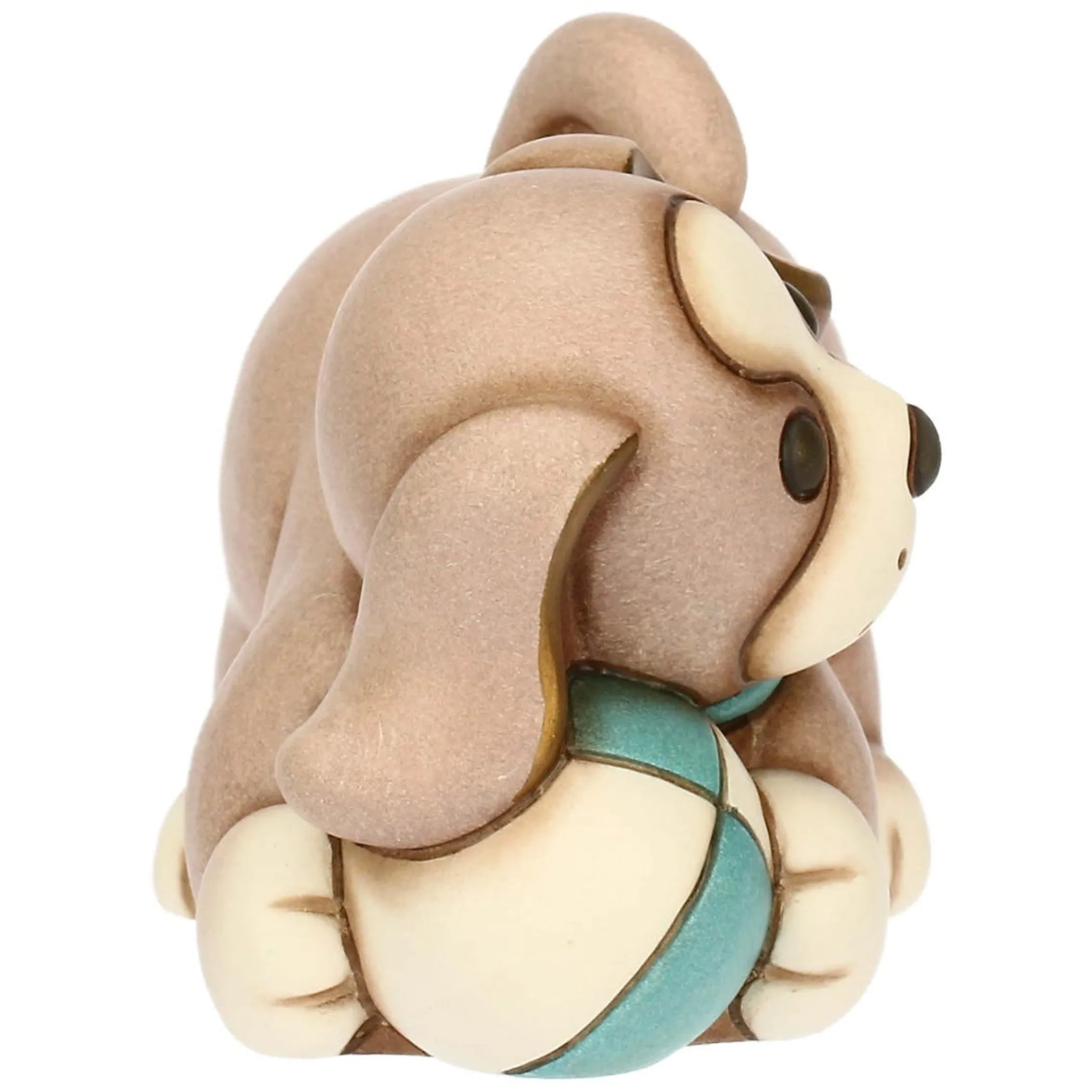 Il cane Todo che gioca a palla, di dimensioni medie, incarna la gioia e la vivacità di un fedele compagno. La sua posa giocosa e dinamica, con la palla tra le zampe, trasmette un senso di allegria e spensieratezza, riempiendo gli spazi di energia positiva ed evocando momenti di gioco e divertimento. Un simbolo di amicizia giocosa, perfetto per chi cerca un amico a quattro zampe in ceramica che porti un sorriso nella sua casa.