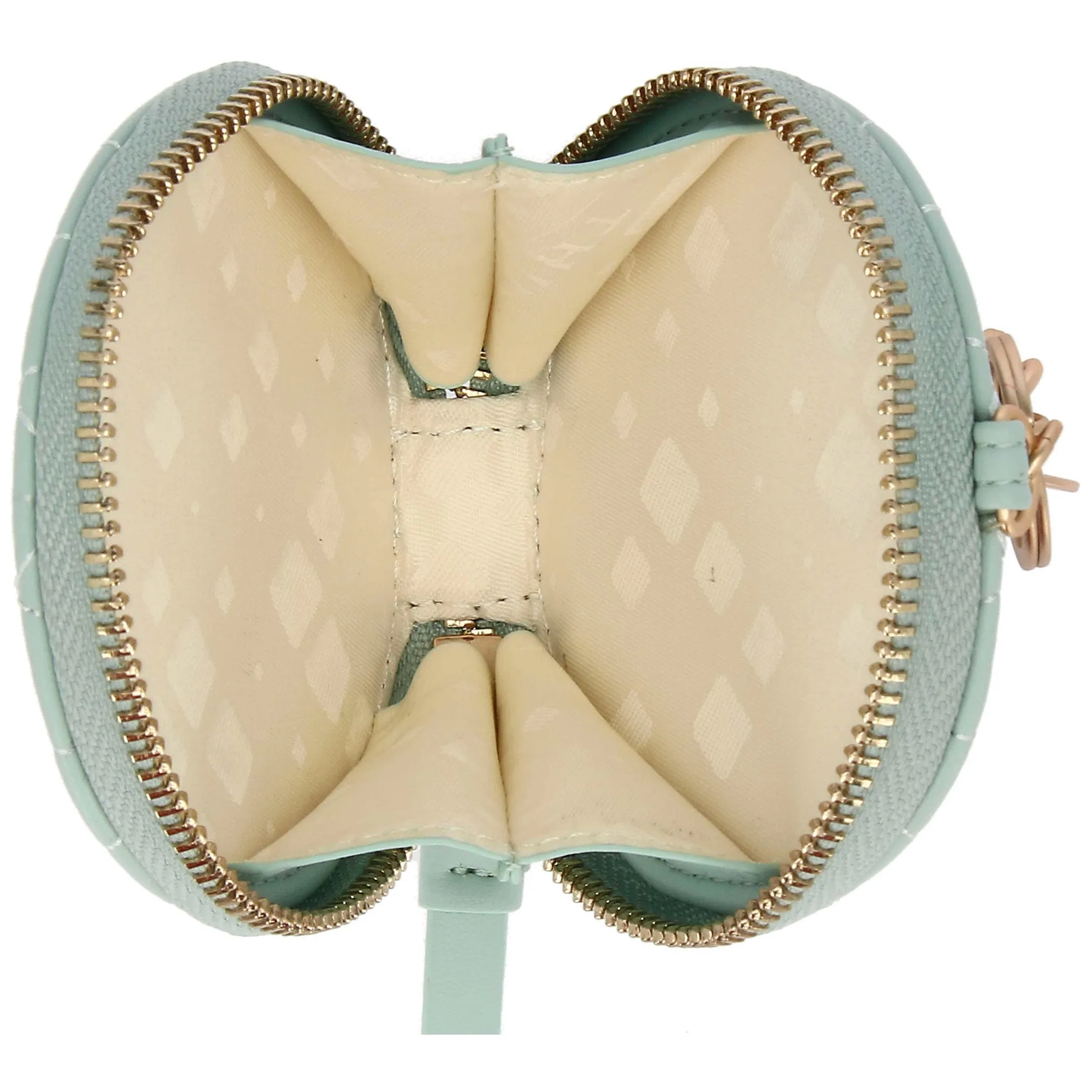 Il portachiavi da donna rotondo con zip in ecopelle verde è un accessorio pratico e sofisticato. La zip permette di custodire piccoli oggetti con sicurezza, mentre la finitura trapuntata aggiunge un tocco di eleganza. Perfetto per organizzare la tua borsa con stile, è un dettaglio raffinato che unisce funzionalità e design.