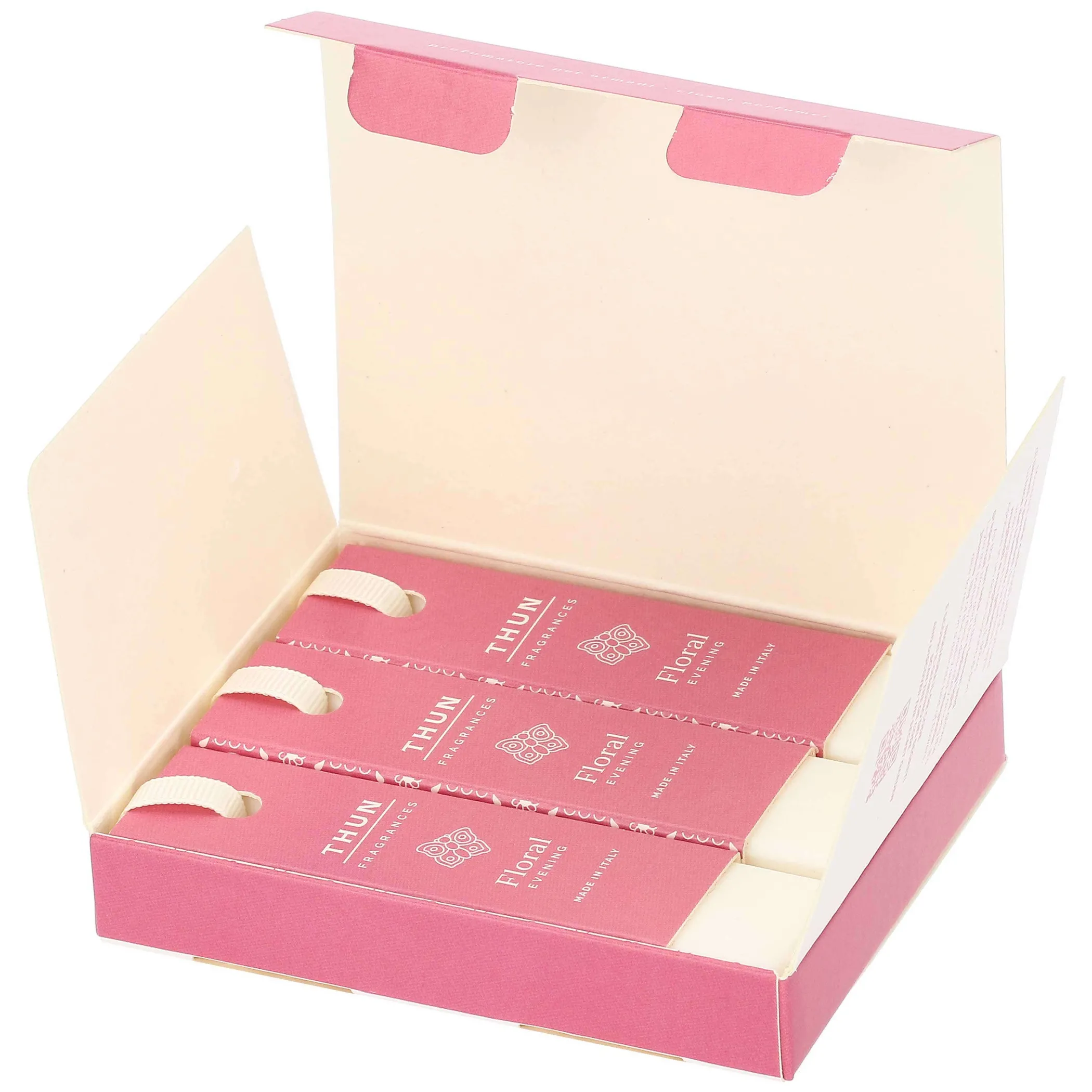 - Appendere all’interno dell’armadio utilizzando l’apposito nastrino o inserire all’interno di cassetti e piccoli spazi. Il prodotto potrebbe macchiare capi e tessuti se posto a diretto contatto con essi.
