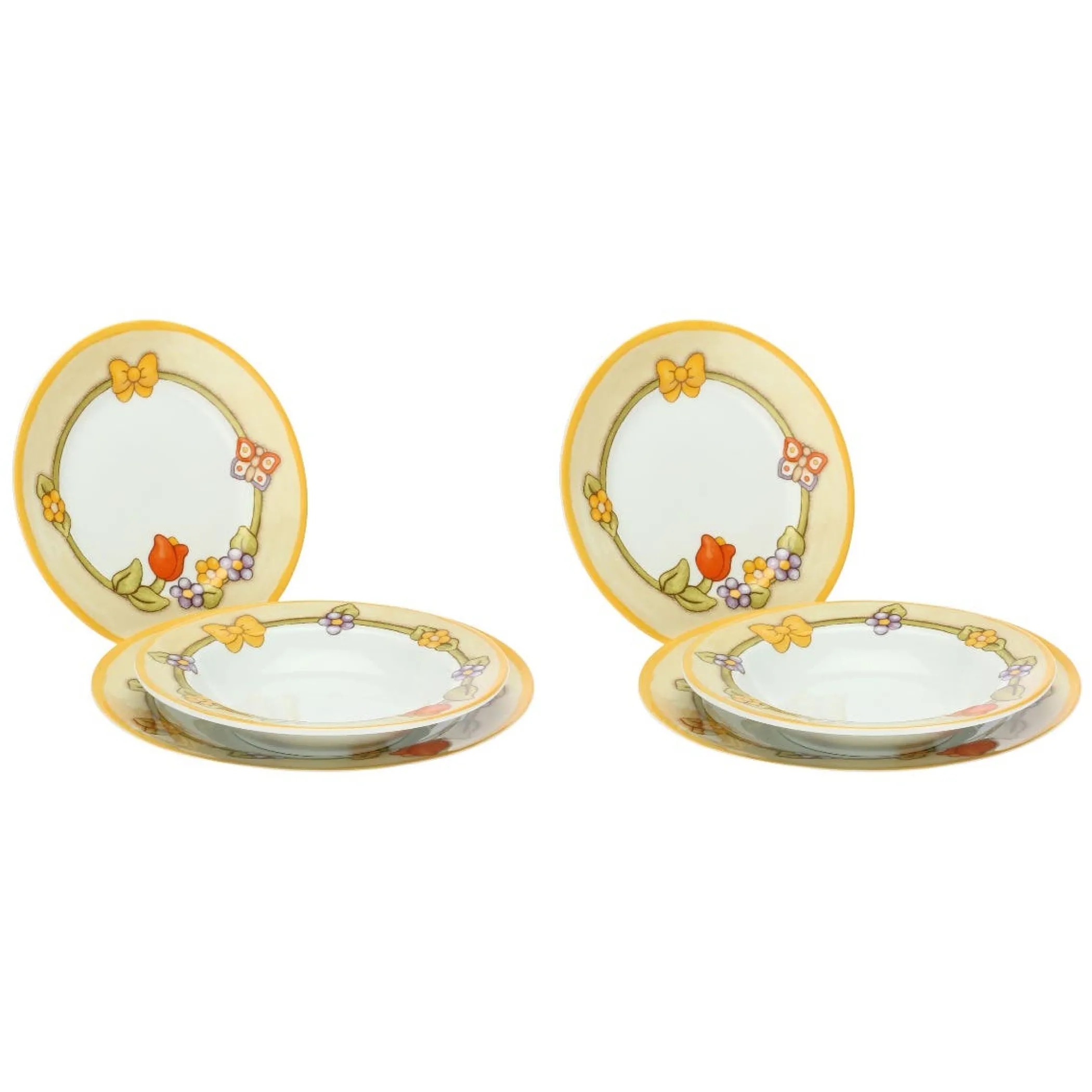 Il set da 6 piatti in porcellana con bordo floreale della collezione Thun unisce funzionalità e bellezza in un perfetto equilibrio. Composto da 2 piatti piani, 2 fondi e 2 piatti dessert, è realizzato in porcellana di alta qualità e decorato con motivi floreali delicati, tipici dello stile caldo e accogliente della linea Country. Ideale per apparecchiare la tavola con gusto in ogni occasione, questo set dona un tocco di eleganza rustica sia ai pranzi quotidiani che alle cene speciali, rendendo ogni momento ancora più curato e conviviale.
