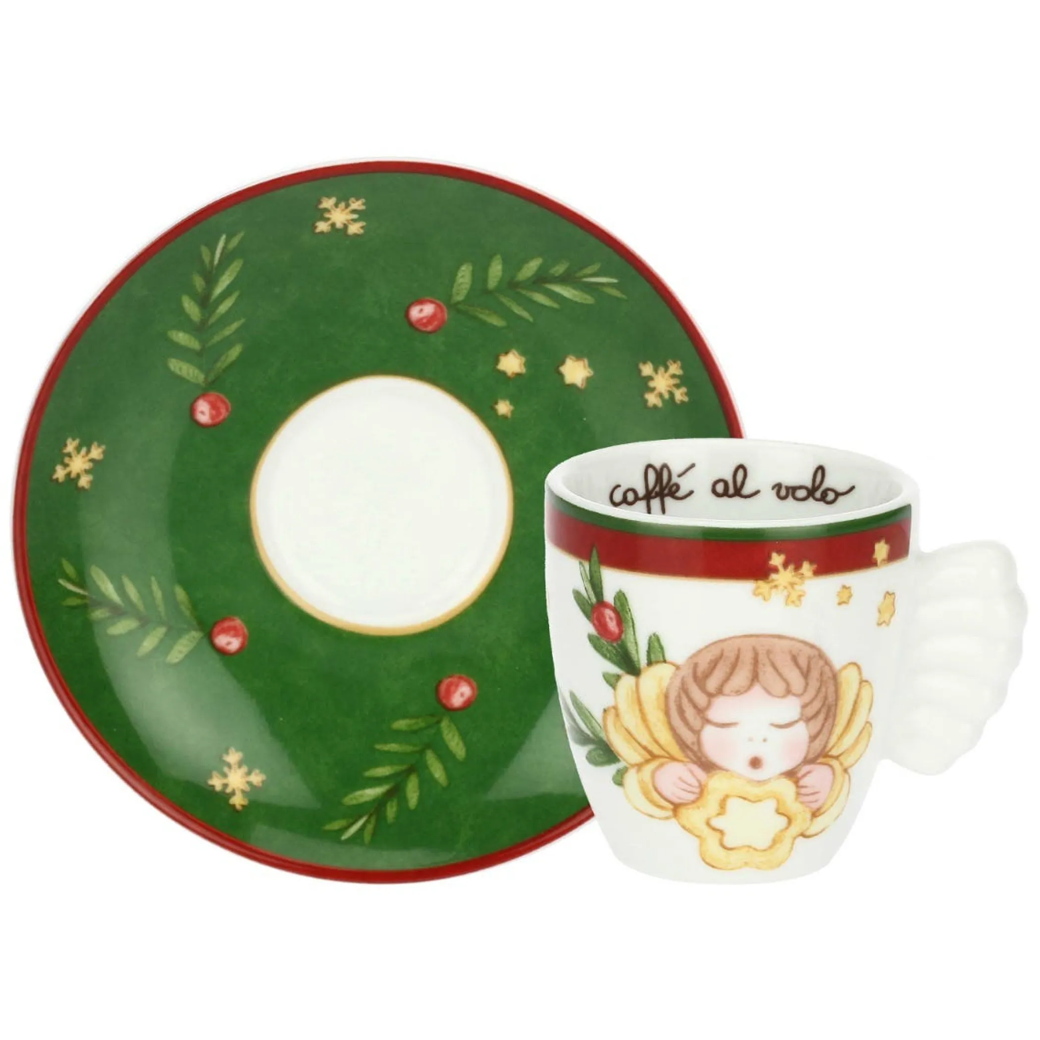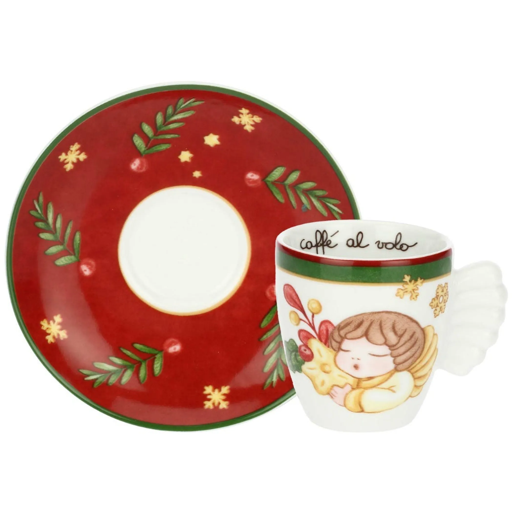Porta un tocco di eleganza festiva alla tua tavola con il set di 6 tazzine espresso in porcellana della linea Sorprese di Natale Thun, arricchito con decorazioni natalizie e il celebre Angelo. Ideale anche come regalo. Abbinalo agli altri accessori della linea per un set natalizio completo.