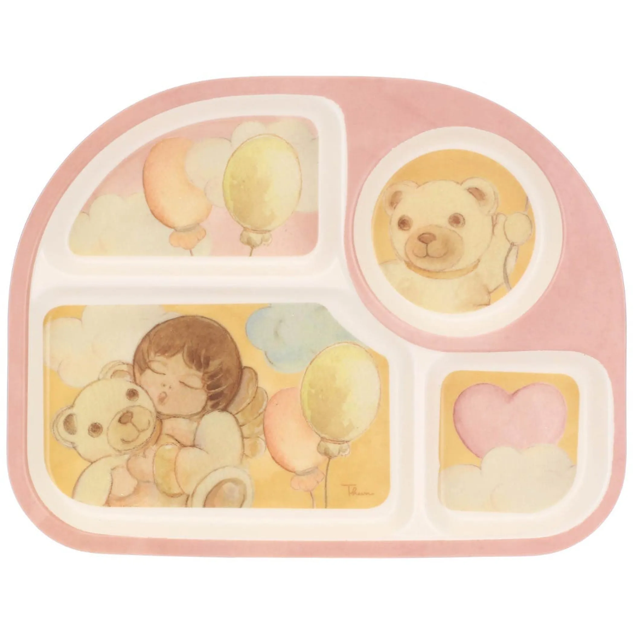 Un set per la pappa dei piccini in melammina THUN composto da piatto, ciotolina, posata e bicchiere in colori neutri e rosa con l’iconico angelo di THUN. Dedicato ai primi pasti, perfetto anche come idea regalo.
