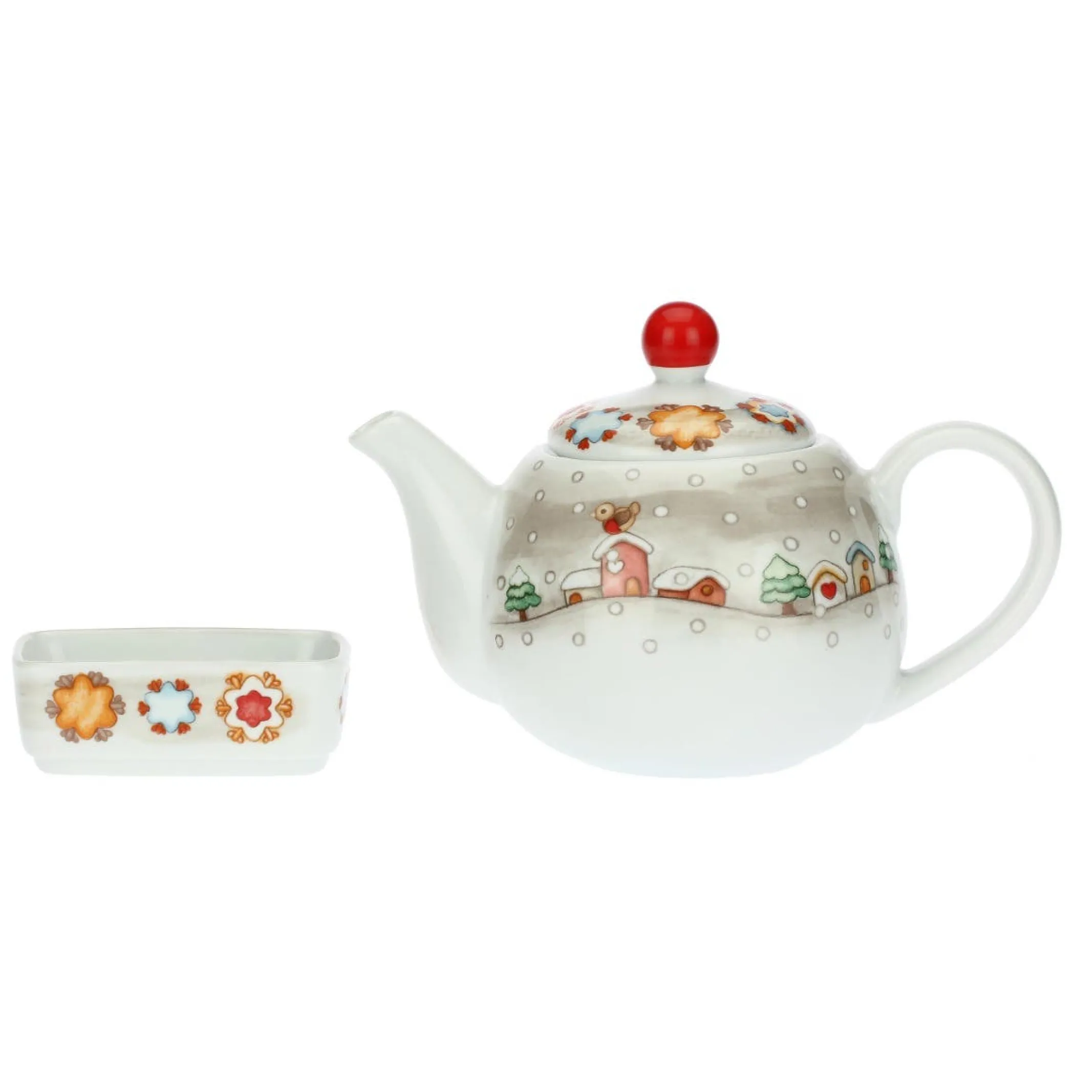Preparati a vivere l’inverno riscoprendo anche le più piccole emozioni che diventano ora un dono prezioso.I cristalli di neve che cadono durante il giorno si trasformano di notte in magnifici fiori da offrire a chi si ama e decorano il set composto da teiera e portabustine del tea della linea Regali d’inverno Thun, per condividere con le persone che ami una calda bevanda. Divertiti a ricreare un ambiente magico della tua casa con tutti gli elementi la nuova collezione Regali d’Inverno. Ideale come regalo.